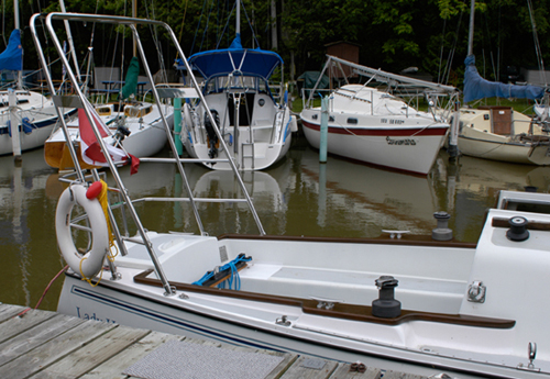 blower. The Teak cockpit boards were there when I bought the boat so they were repaired, sanded and painted with Cetol. The self tailing winches were purchased used and have made sailed short handed a breeze. |