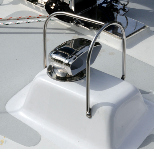 Stainless steel cowl vent guards were made by Stainless Outfitters.  New ABI Stainless steel low profile vents installed. Hopefully now the sheets will not snag the vents on every jibe or tack.