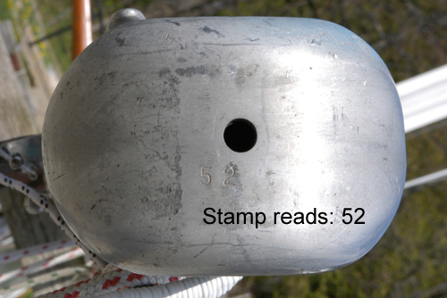 MAST HEAD FITTING WITH SAME STAMPING AS MAST H29 AND HULL NUMBER 52 |