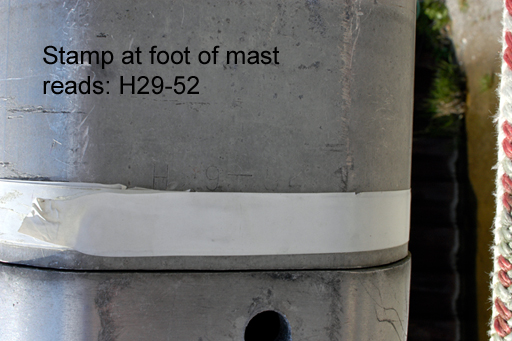 | STAMP JUST ABOVE MAST FOOT SHOWS H29 AND HULL NUMBER |